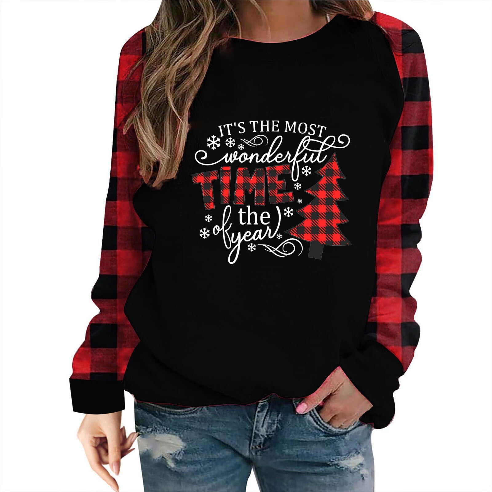 Transer Women S Pullover T Shirt Casual Sexy Fashion Merry Christmas Printing Long Sleeve Round Neck Ruched Tops Walmart Com